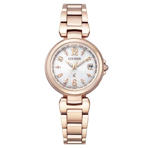 CITIZEN 星辰 XC 櫻花粉紅金光動能電波女錶-27.8mm(EC1037-51A)