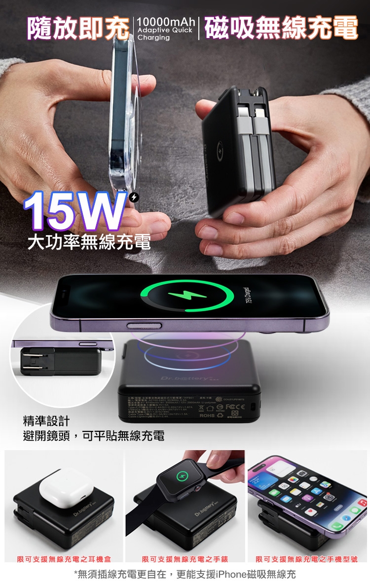 【Dr.b@ttery電池王】第二代MagSafe無線充電+自帶線行動電源+數顯充電頭PD快充(五合一 萬能充Pro)+