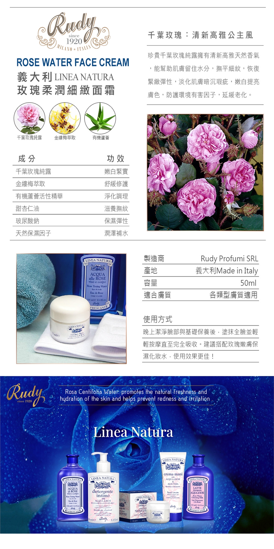 義大利Rudy玫瑰柔潤細緻面霜50ml買3送3(總代理公司貨)