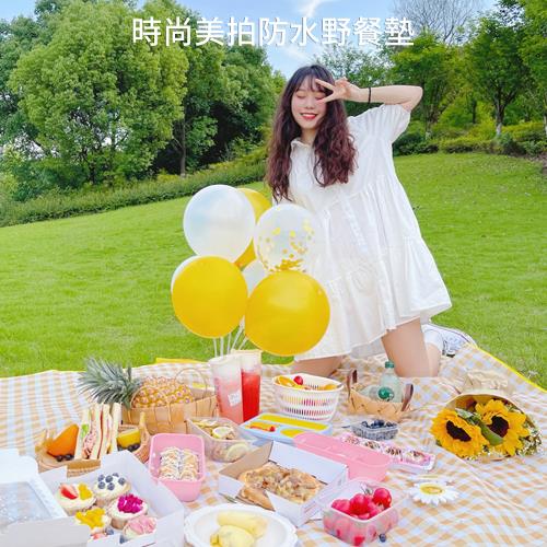【時尚玩家】特大防水防潮網美野餐墊 時尚美拍格紋款-特大200x200cm (沙灘墊 爬行墊)