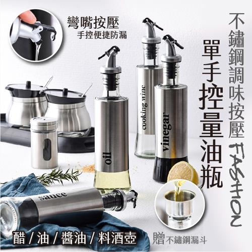 不鏽鋼調味按壓單手控量油瓶(2入組)