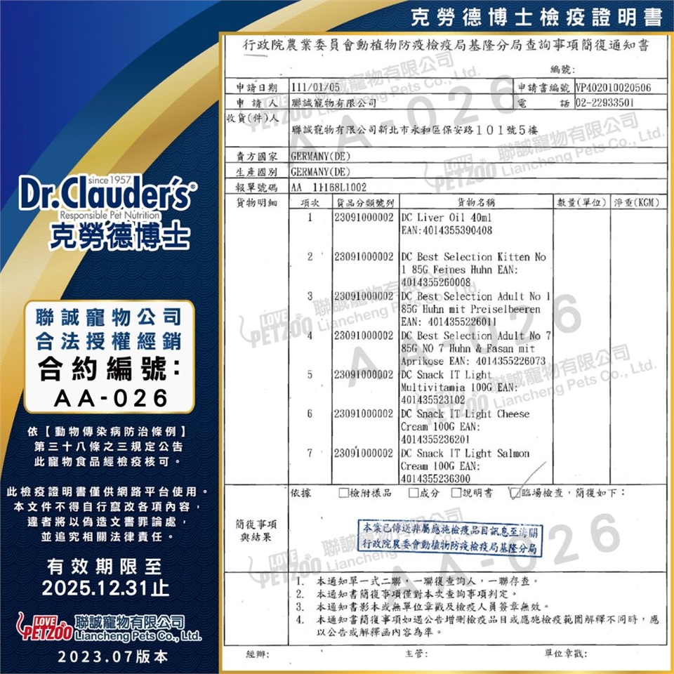 注意事項:冷藏後欲繼續食用時,請先置於常溫下回溫後再餵食,避免愛貓腸胃不適。