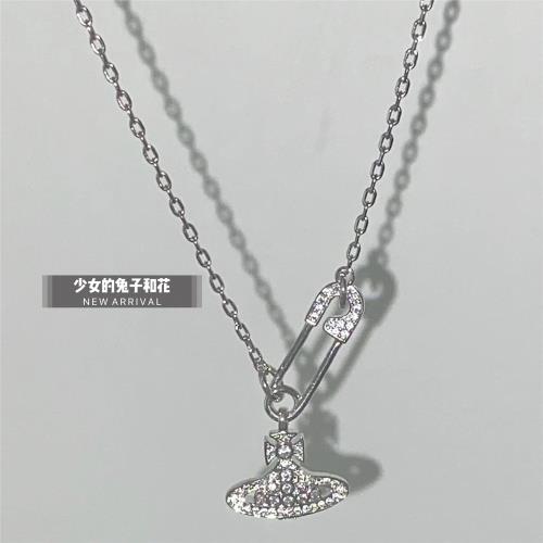 西太后土星鈦鋼項鏈女小眾設計感輕奢ins風星球吊墜水鉆鎖骨鏈