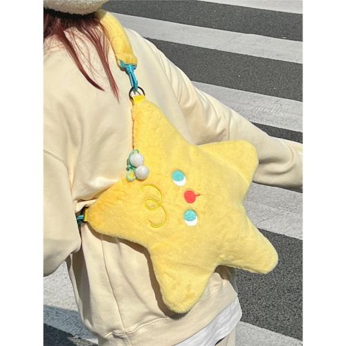 新款可愛百搭星星包卡通毛絨五角星斜挎包小眾設計大容量單肩包