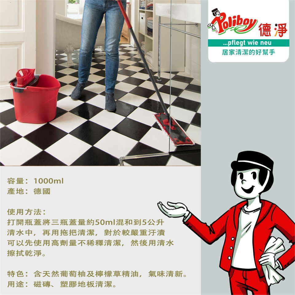 【用途】磁磚、塑膠地板清潔。