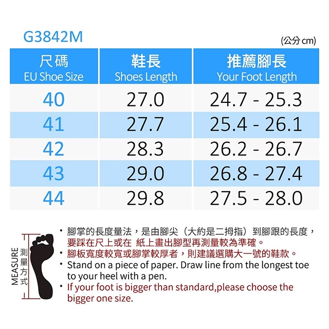 腳寬的部份是指腳掌最寬的部份,大約從大姆趾到小姆趾下方,取最寬的寬度