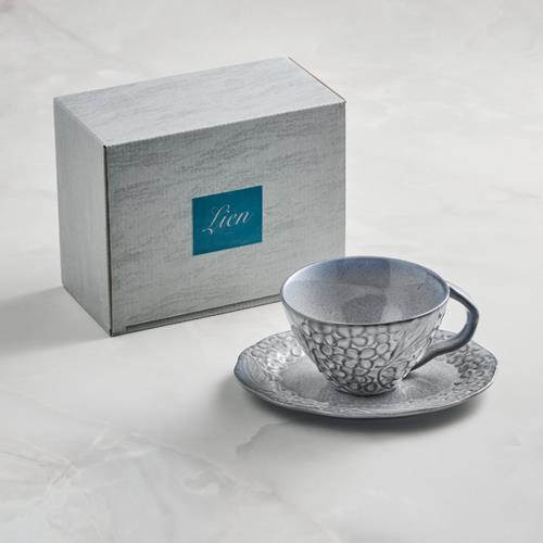 有種創意 - 日本美濃燒 - 繡花咖啡杯碟組(2件式) -灰色 - 330 ml