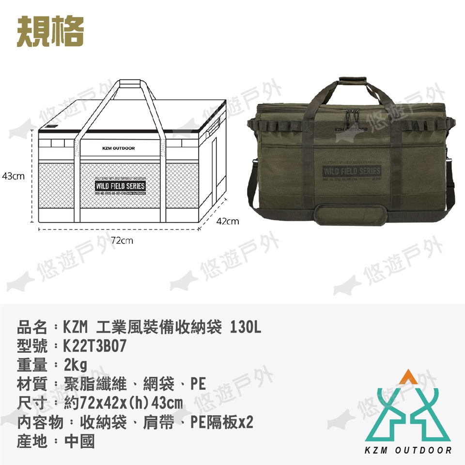 【悠遊戶外】KZM 工業風裝備收納袋130L