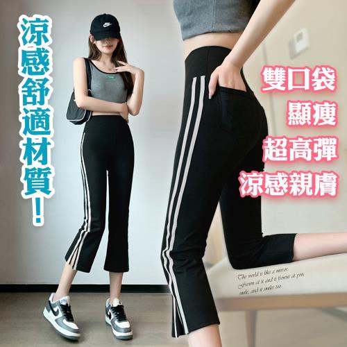 超高彈力!緊收贅肉、大腿肉,九分開叉不顯小腿肚,屁股貼心口袋設計,涼感舒適透氣!