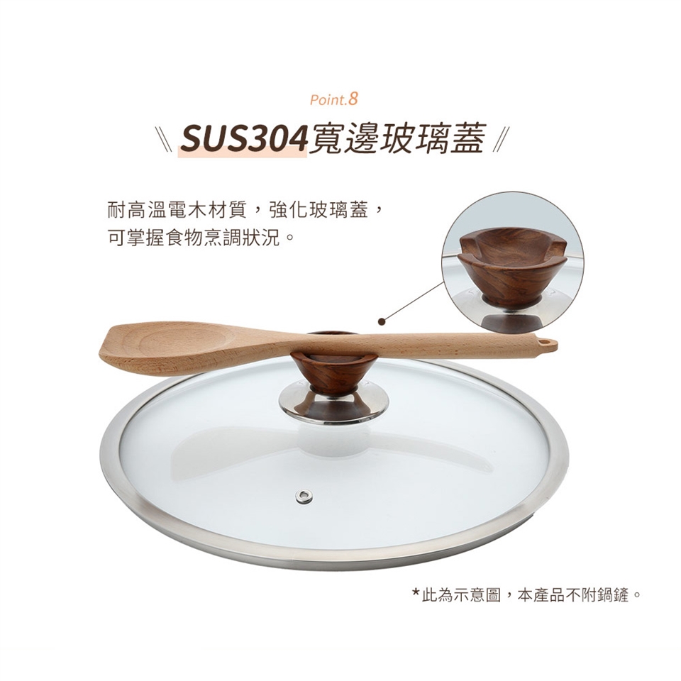 材 質 :手柄-電木、頂珠-電木 不銹鋼、鍋蓋-強化玻璃蓋(304框)