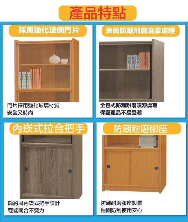 防蛀木心板+防潮耐磨腳座+強化玻璃門片等材質製造