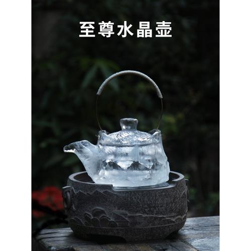 高檔原礦水晶茶壺耐高溫提梁壺純手工電陶爐煮水壺白水晶雕刻茶具