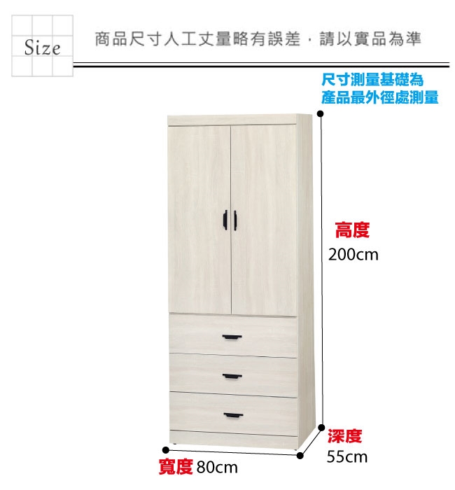 【文創集】米納奇2.7尺二門三抽衣櫃(二色可選) 二色可選+現代簡約風格+安心材質製造,整體採用防蛀木心板+防潮耐磨底座+五金滑軌結構+防夾手緩衝門片五金等安心材質製造,產品外層採用防潮耐磨噴漆處理搭配採用開門櫃+三抽屜+吊衣桿+內開放層格等收納空間設計,全由專人配送到家,專業安心服務,替你省下更多時間!