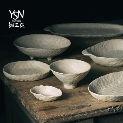 白色粗陶果盤餐具景德鎮純手工捏餐盤果盤碗碟水果擺放粗陶盤子