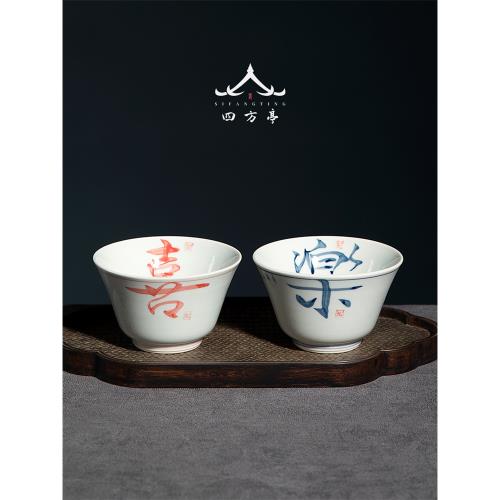 陶瓷茶杯喜樂白瓷主人杯情侶對杯個人專用單杯景德鎮杯子一對茶具