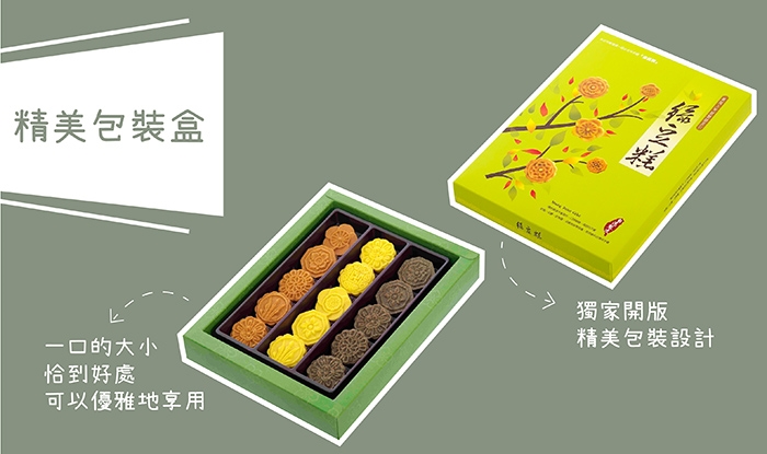 麻油綠豆糕:精選百年老店提煉的純芝麻油,純正又獨特的麻油清香,伴隨入口香氣醇厚,是傳統不變的好味道。