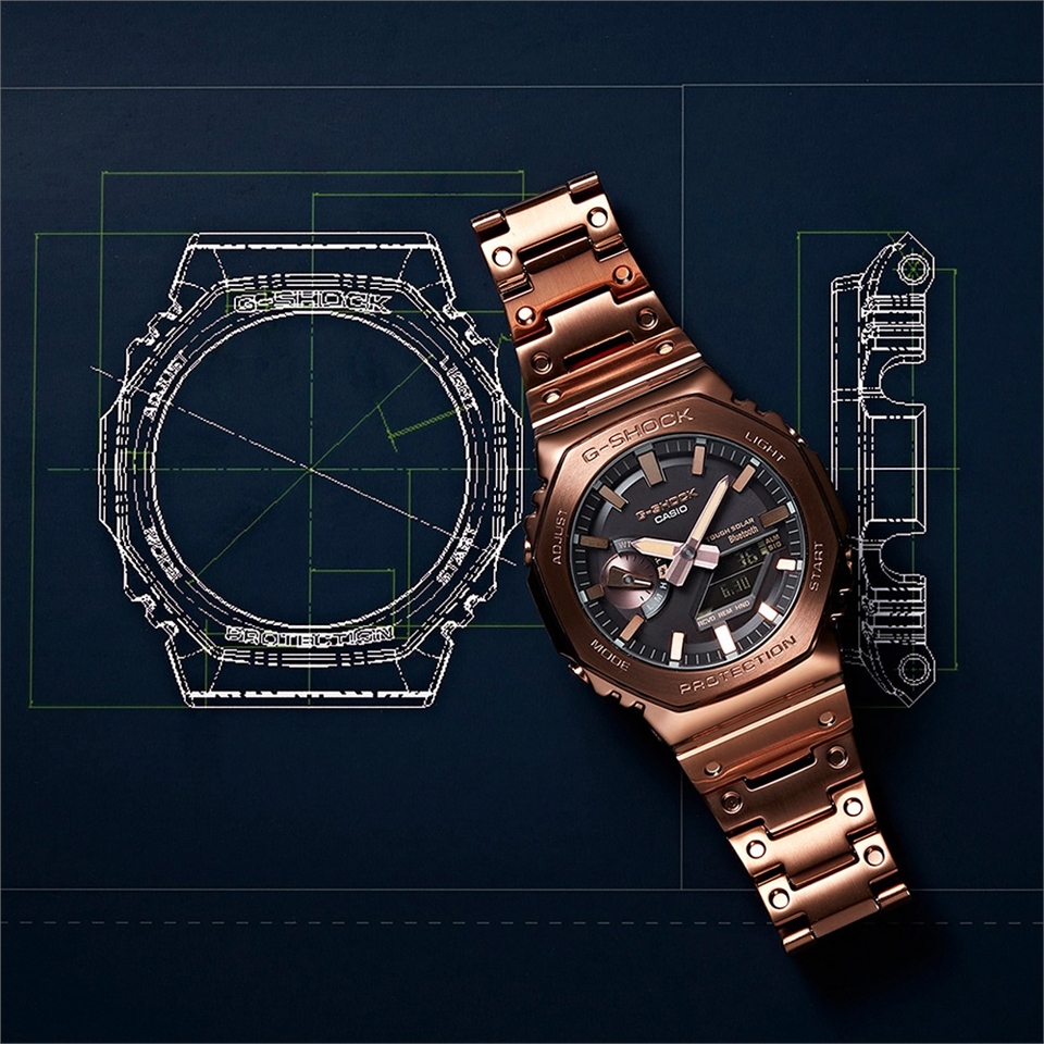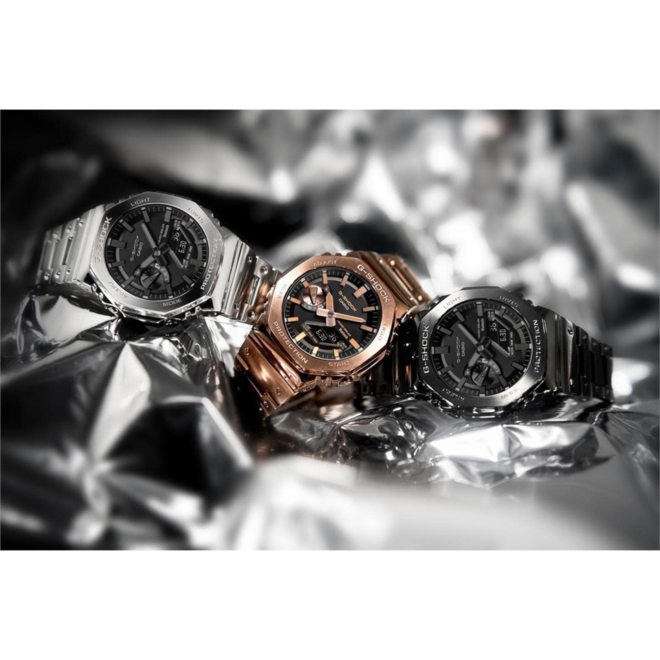 繼承首款G-SHOCK DW-5000C,在不斷發展的2100錶款系列中首度採用全金屬設計。