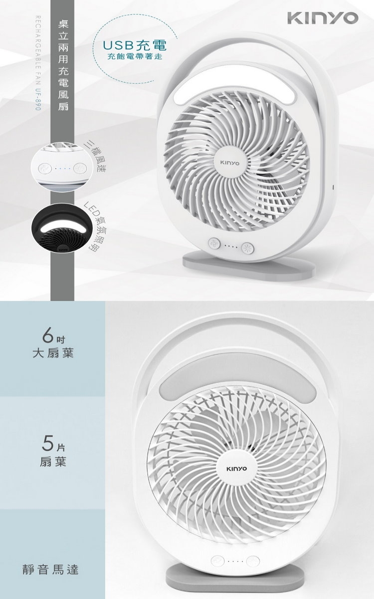 【KINYO】USB桌立兩用充電風扇(UF-890)