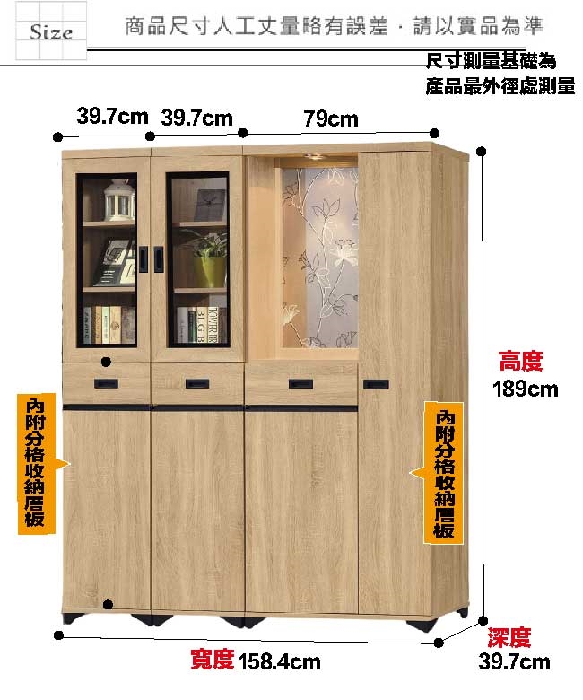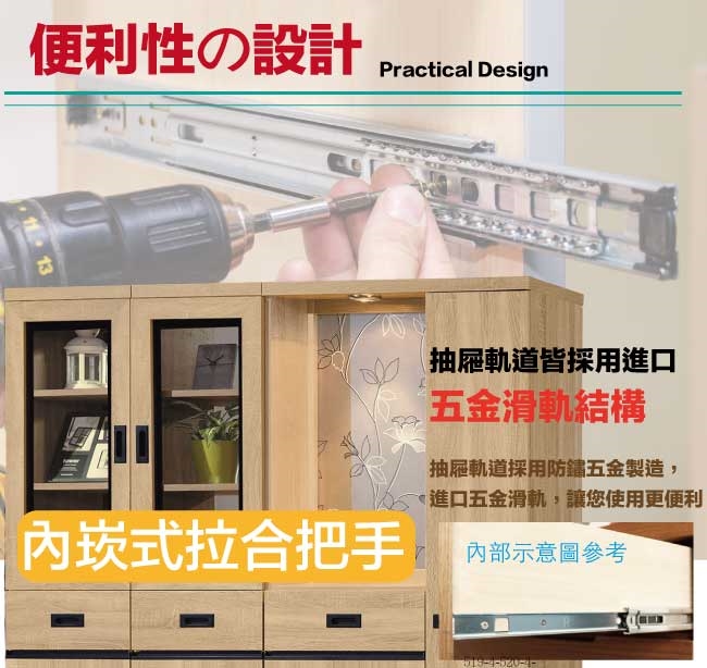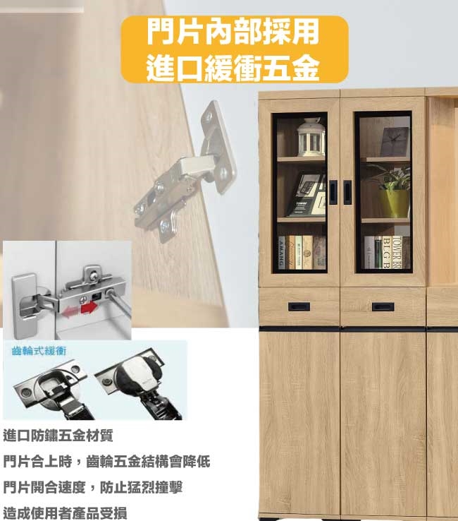 防蛀木心板+防潮黑漆腳座+五金滑軌結構+防夾手緩衝門片五金+強化玻璃鏡面等材質
