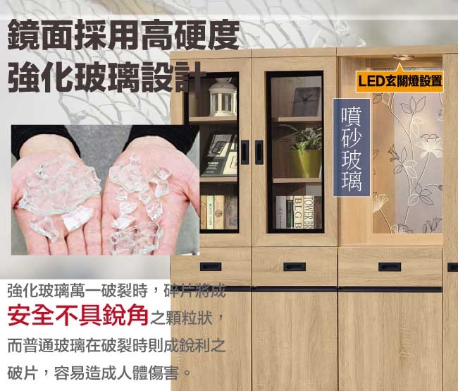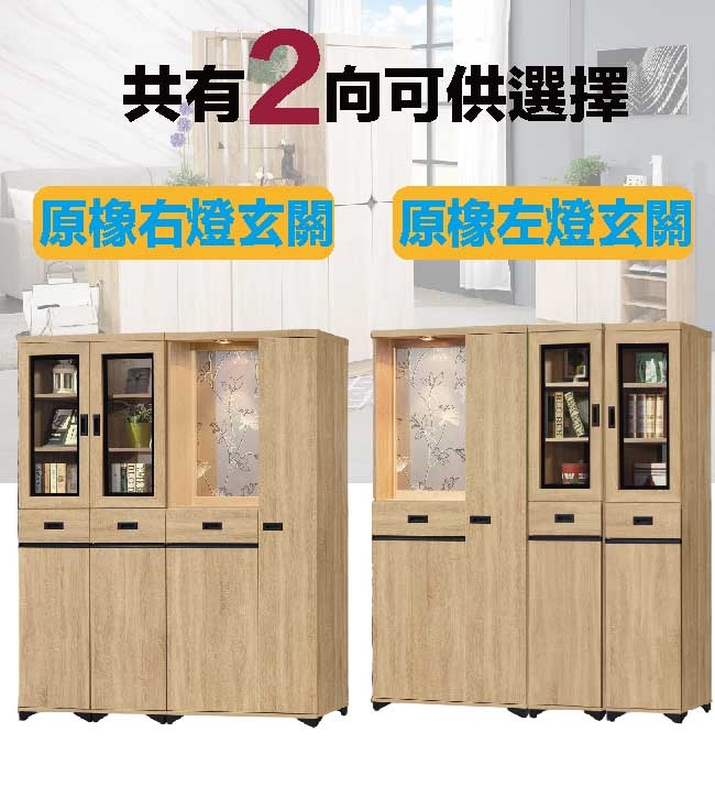 【文創集】溫利5.3尺七門三抽高玄關玻璃櫃組合(左&右二向燈櫃可選) 原橡木紋色系+現代簡約風格+安心材質製造,使用放心+搭配居家更便利,整體採用防蛀木心板+防潮黑漆腳座+五金滑軌結構+防夾手緩衝門片五金+強化玻璃鏡面等材質搭配外層採用優莉坦耐磨全包式噴漆處理 ,採用開門櫃+三抽屜+內&外開放層格+LED玄關燈設置等收納空間設計,全由專人配送到家,專業安心服務,替你省下更多時間!