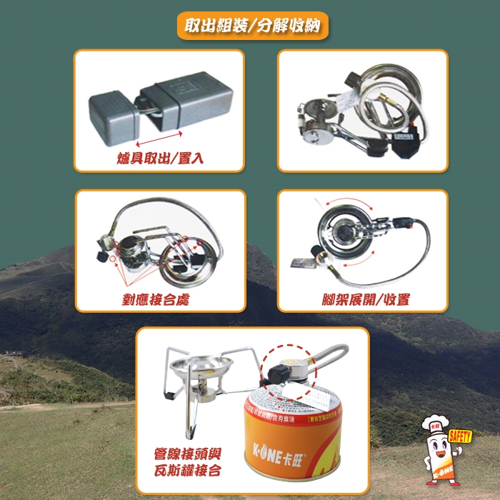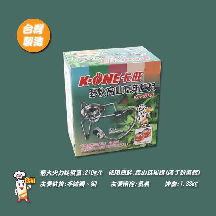 想要成功的攻上高山,遠望山腳下的美景嗎?有了這款卡旺【K-ONE】野炊高山瓦斯爐組(K1-008),在山頂上不論是煮水、煮泡麵、小火鍋...等,都非常適用,火力強大、省瓦斯、安全可靠、體積小、重量輕、方便收納且不佔空間,放在背包裡,幾乎不覺有增加多少重量,這肯定是登山客的最愛。想要一舉攻上壯麗的山峰嗎?它就是您最佳的選擇!