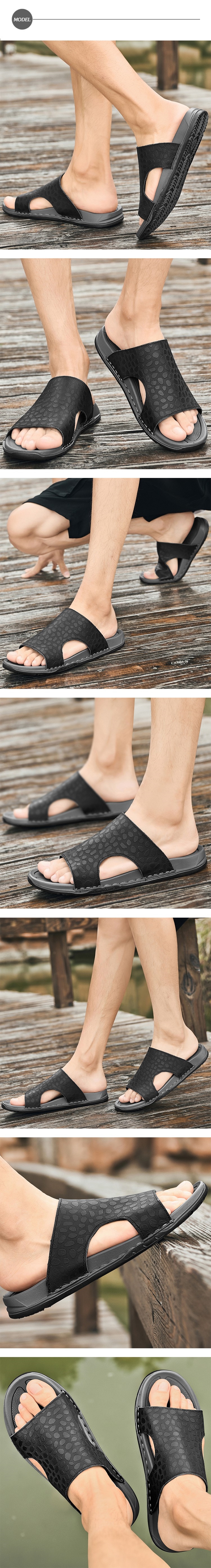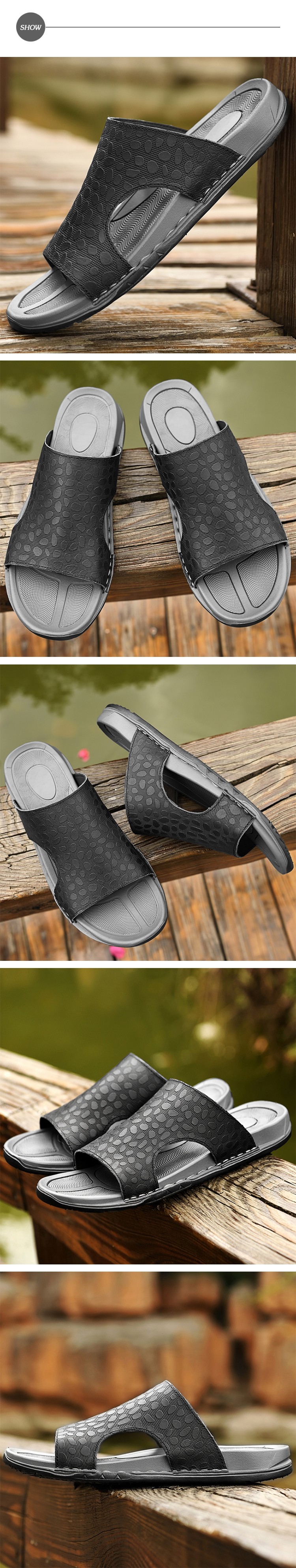 【KIRON】拖鞋 休閒拖鞋/彈性軟底戶外休閒百搭石紋面拖鞋 - 男鞋 黑