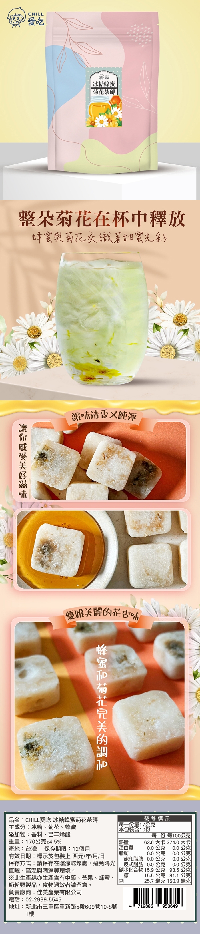 成分:冰糖、菊花、蜂蜜、香料、己二烯酸