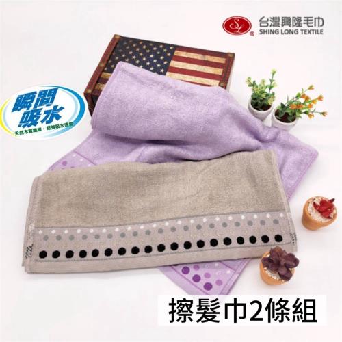 【台灣興隆毛巾】木代爾纖維瞬間吸水擦髮巾(素色圓點緞條2條組) 多款可選