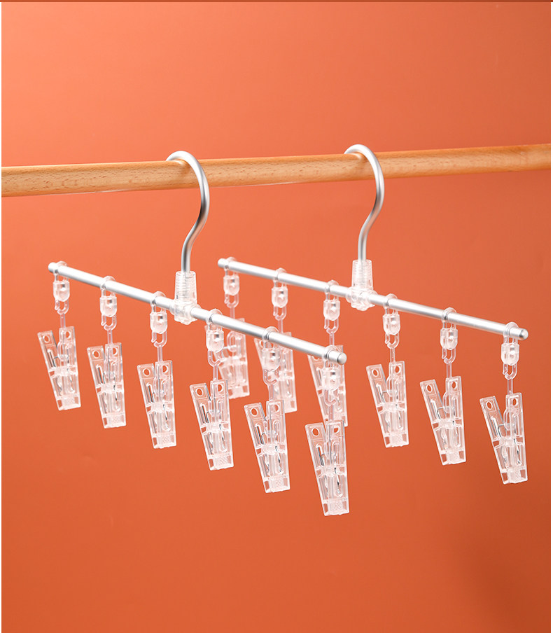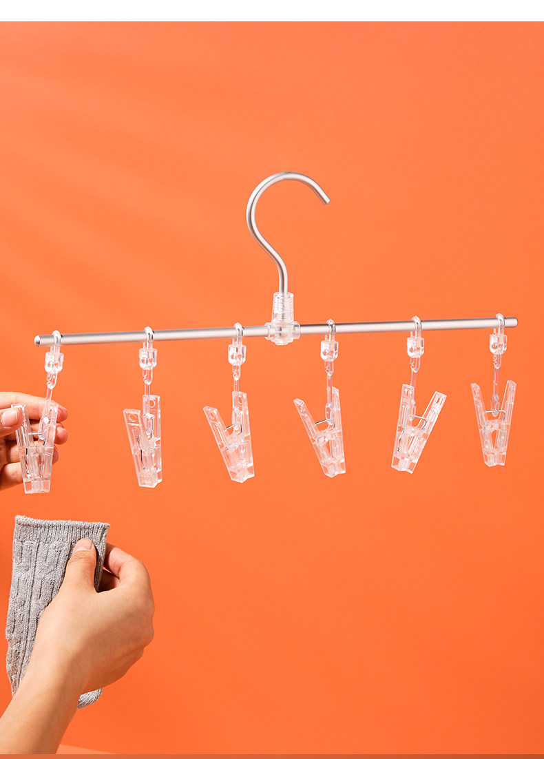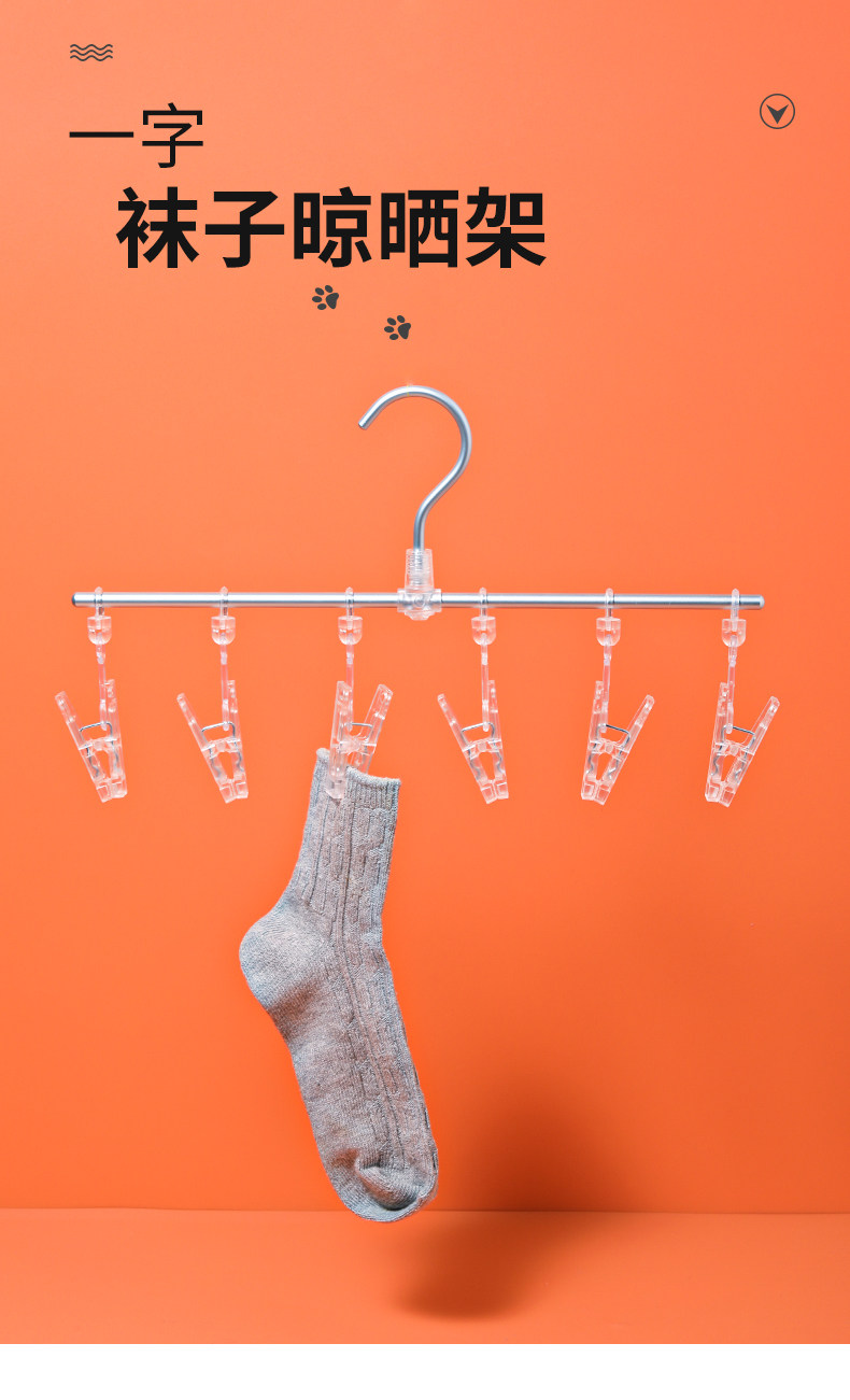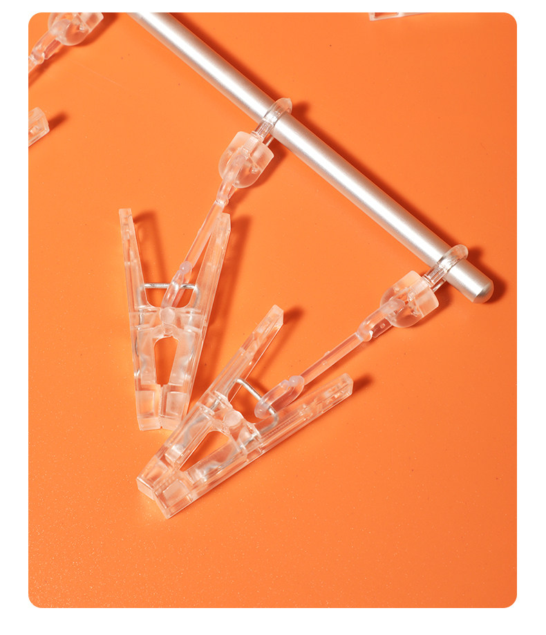 一字型的晾曬架是新款,采用的夾子和10只裝的夾子是一樣的,上面掛鉤和桿子都是鋁合金的,鋁型材和透明ABS塑料互相輝映,這種結合是一種賞心悅目的美。