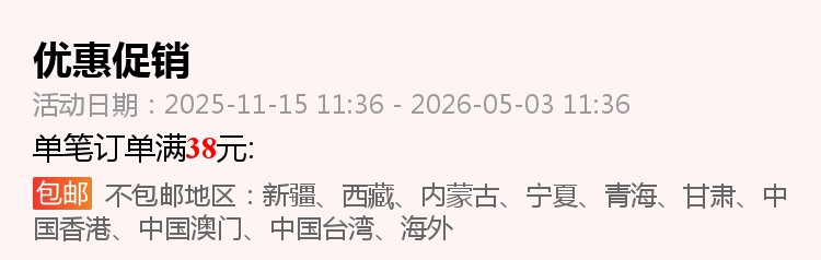 訂單達到免運條件後,運費將涵蓋關稅及5公斤以內包裹的基本運費。若包裹最終稱重超過5公斤,超重部分將依據集運倉運費計算公告(https://m.bcatlogistics.com/single?id=115)依照材積重量加收運費。客服人員將在收到加收運費通知後與您聯繫。若於收到收費通知D+5日內無法聯繫上您或未得到回覆,訂單將直接取消,包裹將進行逆物流退回廠商。此外,消費者需承擔大陸端的往返運費(約新台幣200至2000元不等)。若未支付逆物流費用,將無法進行退款作業。建議您在下單前先與商家客服確認運費預估金額。 - 「全球購折價券及運費折抵券,為消費者免費領取,視為附條件使用的優惠券,僅限訂單成功完成後生效。若因斷貨、缺貨等不可控因素導致訂單取消,折價券/運費折抵券因交易未成立而失效,恕不返還。消費者領取及使用本折價券,即視為同意相關活動規則及限制。」