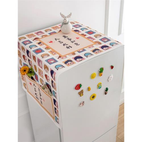珍珠松地中海卡通棉麻布藝罩單雙對開冰箱罩蓋布巾如意