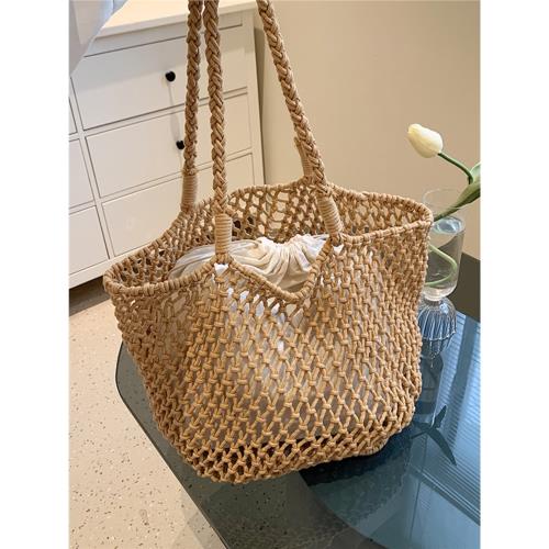 鏤空手工編織包漁網包慵懶風單肩腋下包大容量托特包度假海灘包