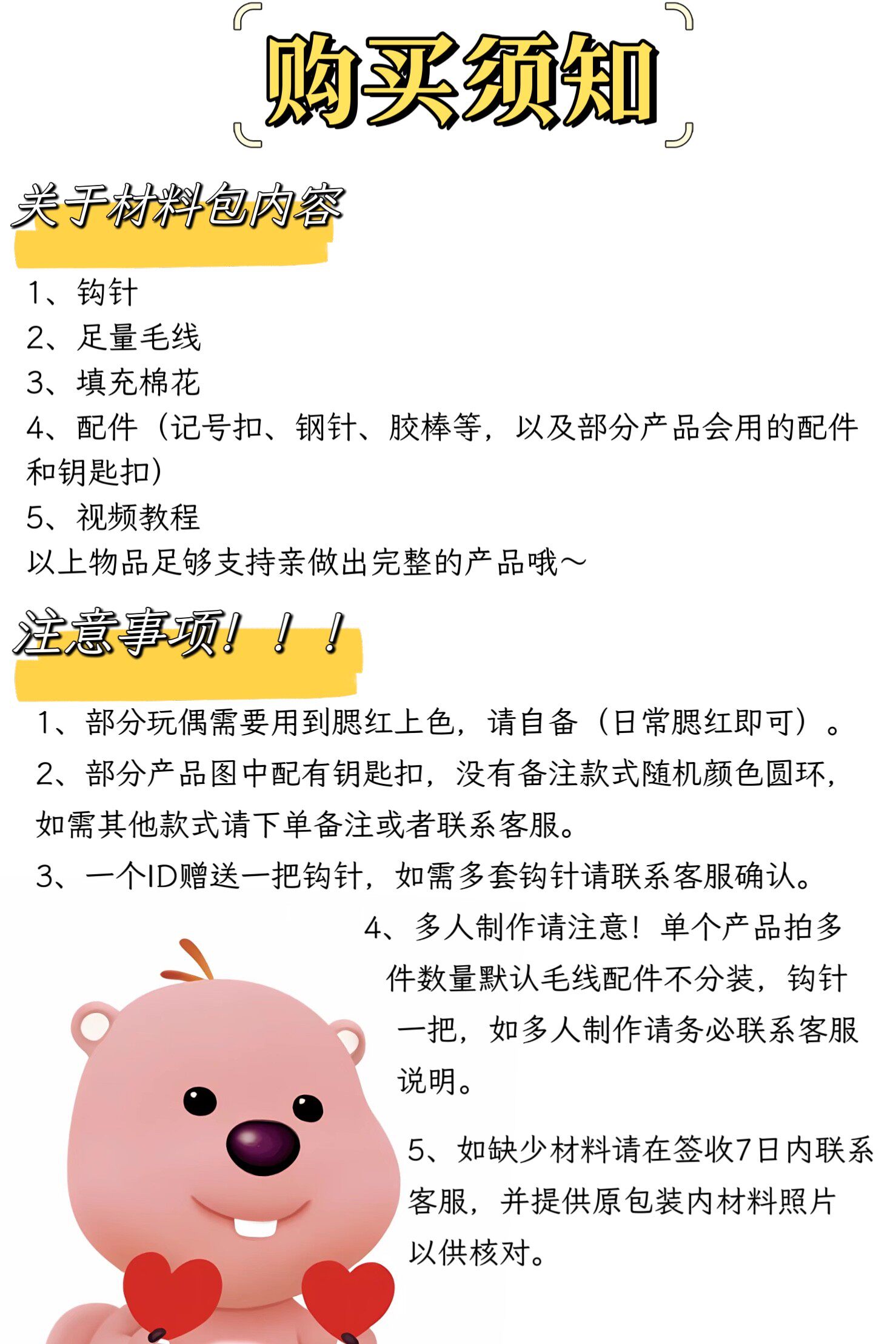 材料包包含:足量毛線、鉤針工具、手縫針、記號扣、眼珠、熱熔膠、棉花、、視頻教程{不含木底座}