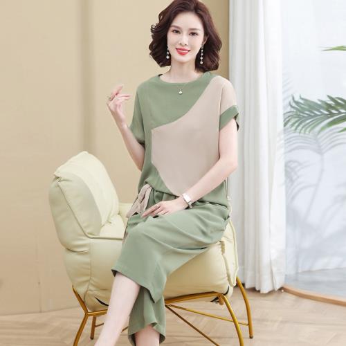 媽媽夏裝真絲套裝洋氣時尚2025新款中老年人女裝夏季休閑兩件套