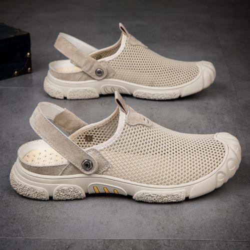 包頭涼鞋男潮夏季鏤空網面拖鞋男軟底防滑夏天透氣真皮男士沙灘鞋