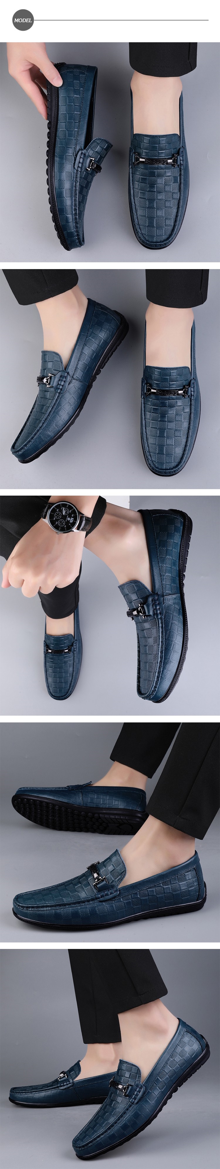 【ANSEL】樂福鞋 真皮樂福鞋/真皮頭層牛皮格子壓紋一字釦造型百搭樂福鞋 - 男鞋 藍