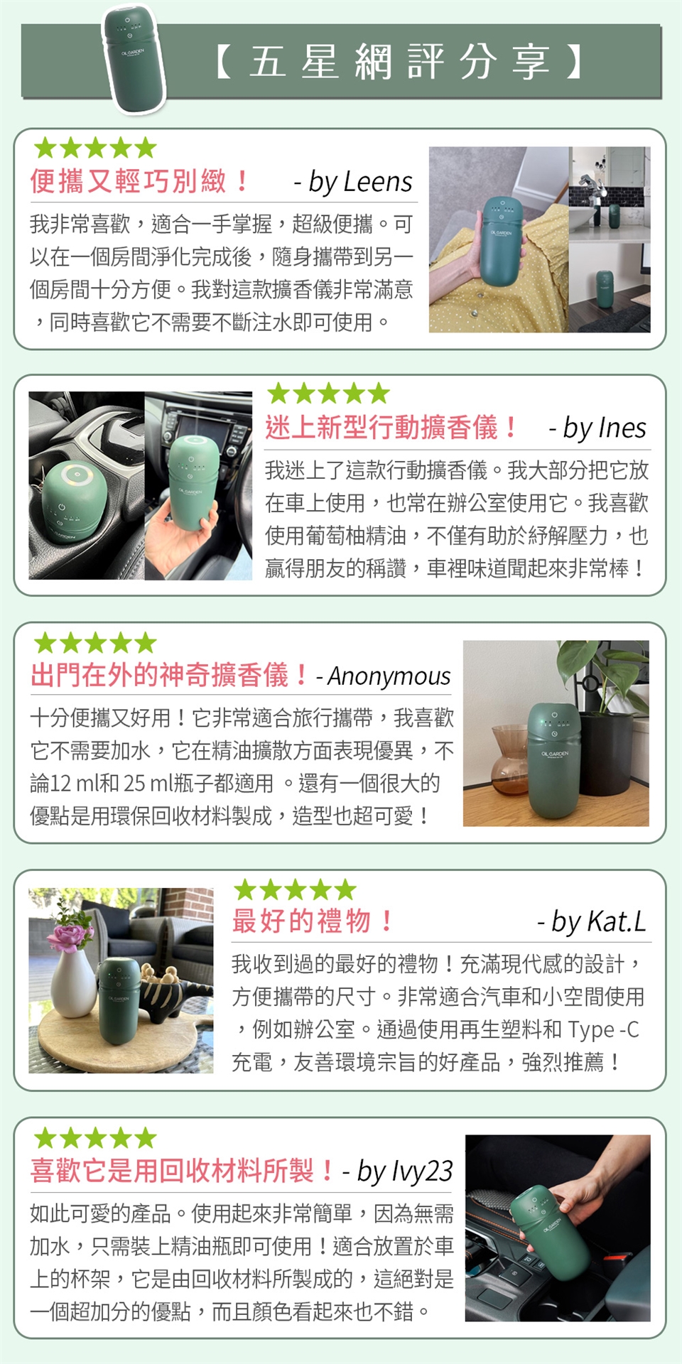 4. 建議使用Oil Garden 純精油。