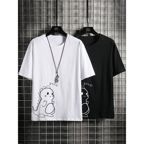 純棉短袖t恤男士春夏季圓領印花寬松ins潮流青年學生上衣服情侶裝