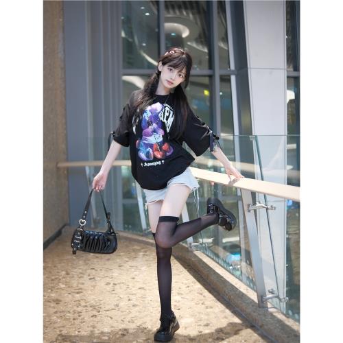 日單穿搭暗黑哥特原宿風兔甜酷少女大碼短袖亞比綁帶長T恤