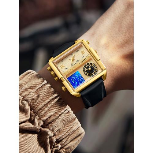 開學季方形手表男士雙顯初高中學生潮流夜光防水個性鋼帶電子表男