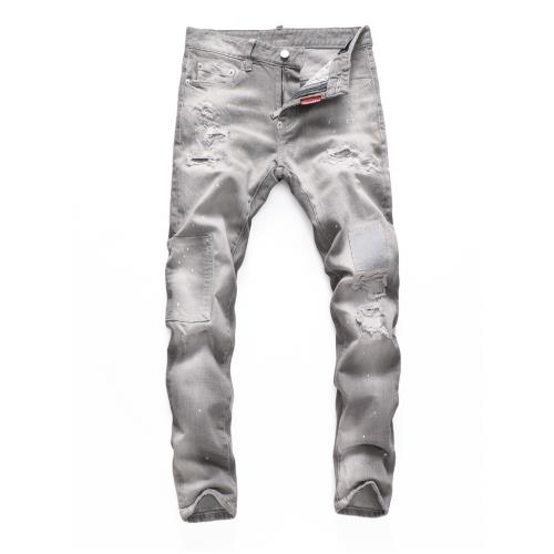歐洲站新款煙灰色刀割破洞補丁乞丐牛仔褲男韓版潮流修身小腳褲子