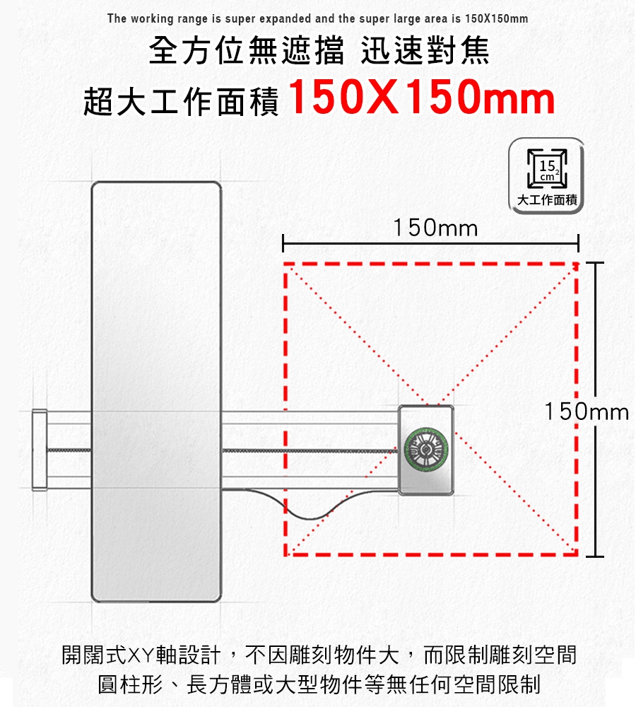 ⭐【超大範圍】 →開闊式設計150X150mm超大空間,不因雕刻物件大而受限制