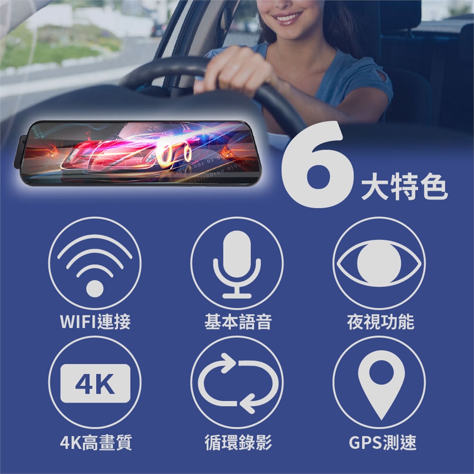 【Jinpei 錦沛】4K超高畫質行車紀錄器、全觸控螢幕、GPS 測速、WIFI連接、語音操作、前後雙錄