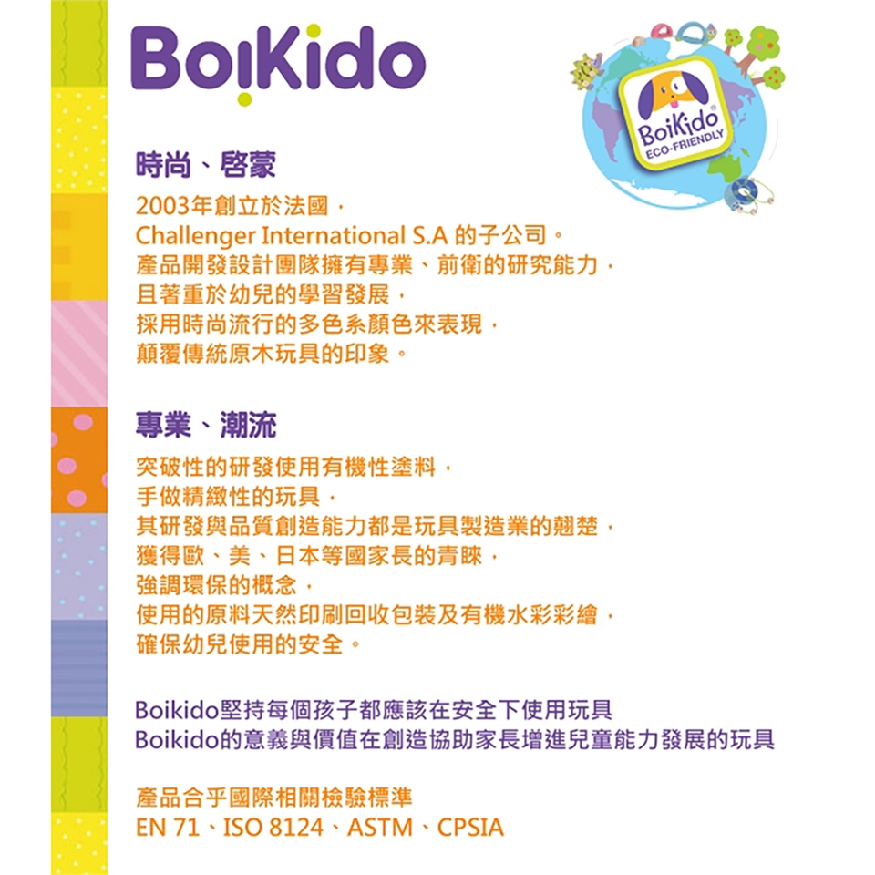 ◆ 全產品合乎美國ASTM、歐盟EN71及ISO8124、CPSIA 等兒童玩具產品安全認證。