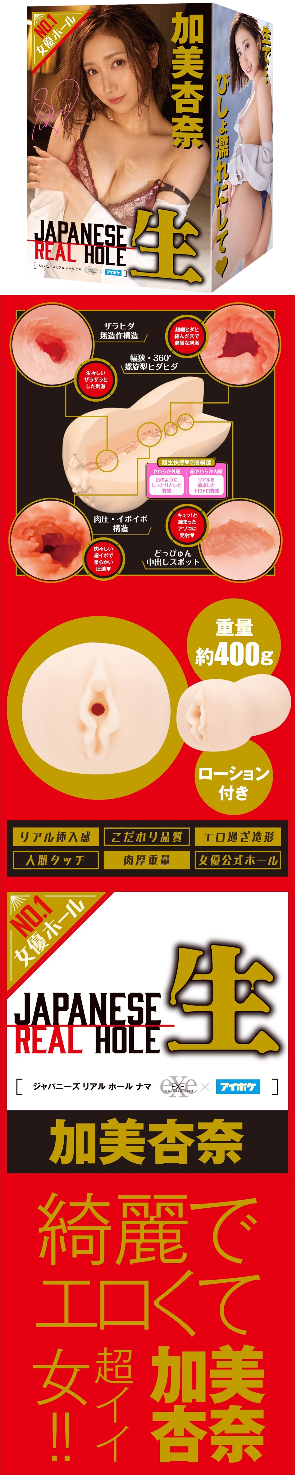 NO. 1AV女優自慰套!!超純粹快感!雙層結構『JAPANESE REAL HOLE 生』漂亮好色又喜歡做愛_超級正的女孩!!盡情享受純粹深入加美杏奈的極上名器!!