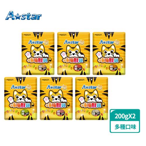 A Star 高蛋白喵喵鮮貝袋裝200gx2(貓咪餅乾、貓木天蓼、 貓零食、貓點心)