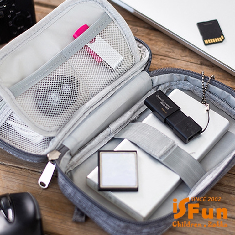 可收納類行動源動、硬碟、3C線材、手機等,手拿設計可掛放在手上,