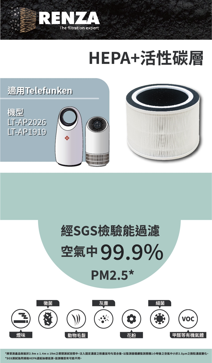 RENZA 高效HEPA+活性碳(2合1)濾網