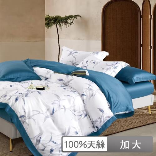 【貝兒居家生活館】60支100%天絲四件式兩用被床包組 裸睡系列 (加大雙人/梅芳竹葉藍)