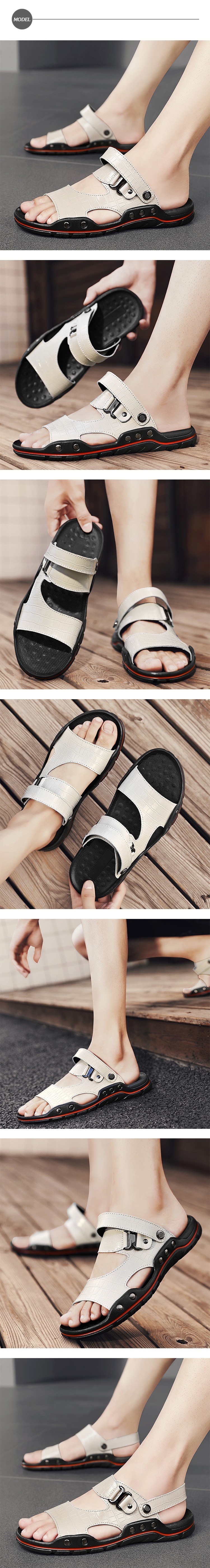 【KIRON】拖鞋 涼鞋/兩穿法設計個性鱷魚皮紋拼接時尚涼拖鞋 - 男鞋 米